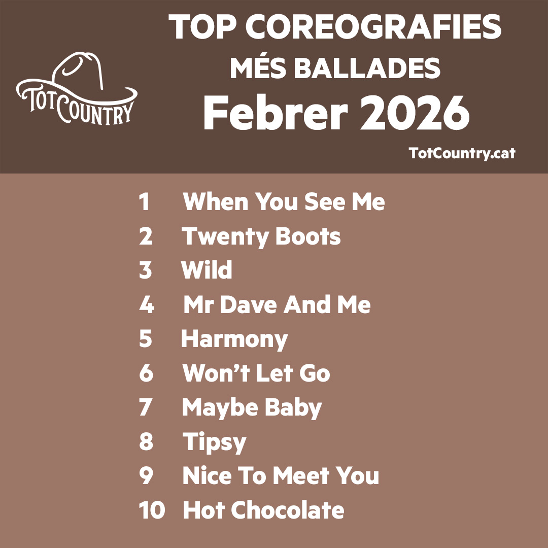 Cada mes, TotCountry elabora el rànquing de les coreografies country Catalan Style més ballades a Catalunya, a partir de l’anàlisi dels fulls de ball de trobades i festes publicades al Butlletí Country-LD d’en Juan José Vara
