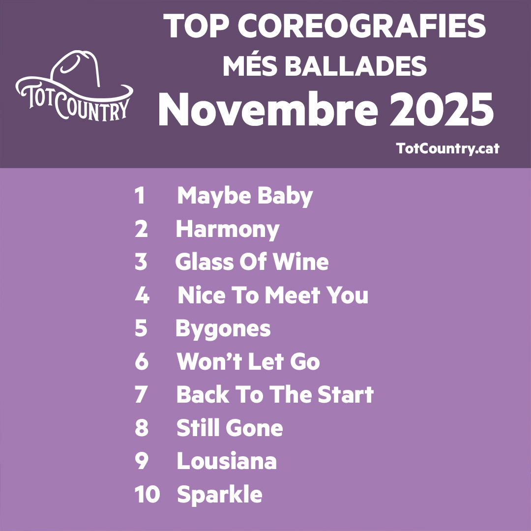 Durant el mes de novembre de 2025, i amb un total de 76 esdeveniments registrats, la coreografia més ballada ha estat “Maybe Baby”, seguida de “Harmony” i “Glass of Wine”.