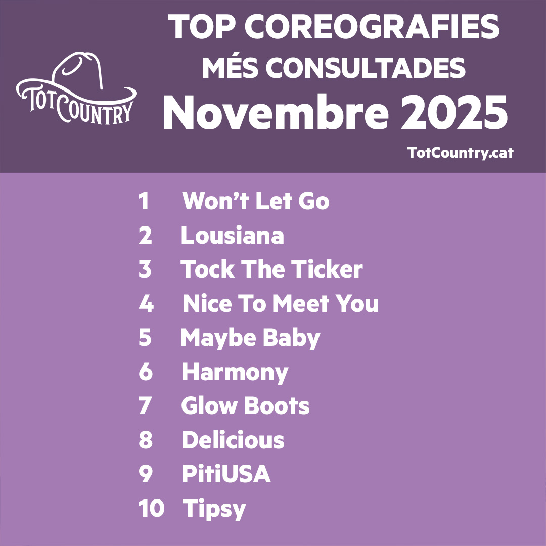 El passat mes de novembre 2025 la coreografia més consultada ha sigut Won’t Let Go seguida de Lousiana i Tock The Ticker