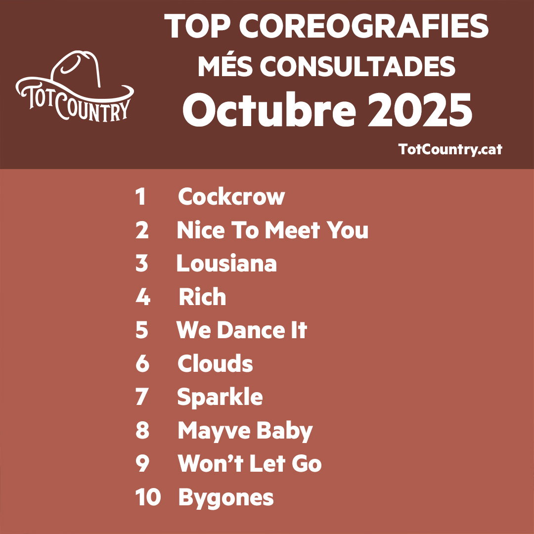 Mensualment des de TotCountry elaborem una llista amb el Top 50 de les coreografies més consultades a la nostra web.